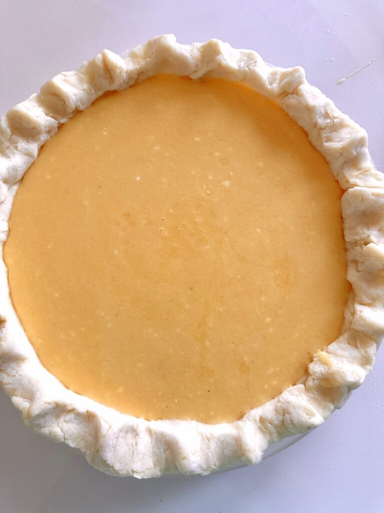 - Pour the filling into the pie crust.